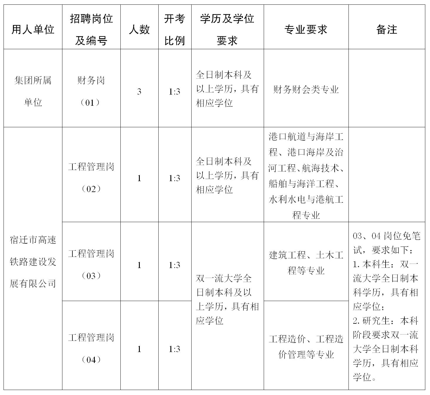 宿遷交通集團(tuán)2022年夏季校園招聘崗位表